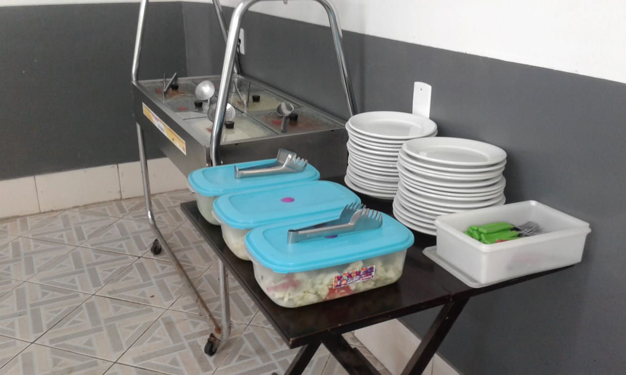 Nesse modelo também fica em comodato todos os itens para o serviço, como: buffet, suqueira, pratos, talheres, entre outros.